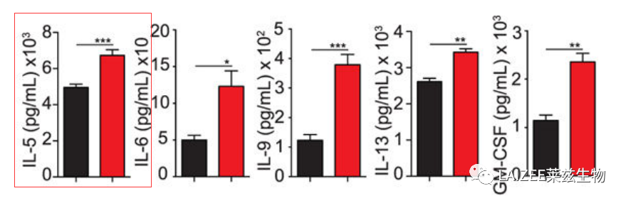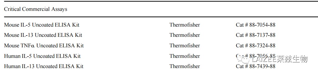 哮喘潜力靶点IL5 | Invitrogen ELISA热门靶点解析发表时间:2023-04-25 23:12 哮喘潜力靶点IL5 ![]() IL-5是由2型辅助T细胞和肥大细胞产生的白细胞介素。人IL-5由115个氨基酸组成(小鼠为133个),它的受体是一种异二聚体,其β亚基与白细胞介素3(IL3)和集落刺激因子2(CSF2/GM-CSF)的受体共享。IL-5与白介素4(IL4)、白介素13(IL13)和CSF2的基因一起在5号染色体上形成细胞因子基因簇。已发现,IL-5、IL4和IL13由分布在染色体5q31上120千碱基的长程调控元件协同调节。 IL-5与过敏性鼻炎、哮喘等多种变应性疾病的病因有关,其中循环、气道组织、诱导痰中嗜酸性粒细胞大量增加。鉴于嗜酸性粒细胞和过敏性哮喘病理的高度一致性,推测嗜酸性粒细胞在这种疾病的病理中具有重要作用。靶向IL-5的药物有美波珠单抗(Mepolizumab)和瑞珠单抗(Reslizumab)。 推荐 IL-5 ELISA试剂盒 ![]() 推荐理由:性价比高 IL-5 Human Uncoated ELISA Kit 货号:88-7056-88 适用样本:Plasma=100 µL, Serum=100 µL, Supernatant=100 µL 检测范围:4-500 pg/mL IL-5 Mouse Uncoated ELISA Kit 货号:88-7054-88 适用样本:Plasma=100 µL, Serum=100 µL, Supernatant=100 µL 检测范围:4-500 pg/mL ![]() ![]() 哮喘是一种以可逆性支气管收缩和气道高反应性(AHR)为特征的气道异质性炎症性疾病。哮喘通常是由活化的T辅助细胞2(Th2)释放白细胞介素-5(IL-5)和IL-13等2型细胞因子引起的。第2组固有淋巴细胞(ILC2s)可通过分泌大量的2型细胞因子,促进肺嗜酸性粒细胞增多和气道高反应性(AHR)(哮喘的主要特征),引发过敏性哮喘的病理性炎症。 本研究发现TNF/TNFR2轴是小鼠和人ILC2的一个中心免疫检查点。ILC2选择性表达TNFR2,阻断TNF/TNFR2轴抑制存活和细胞因子产生,并减少ILC2依赖性AHR。TNFR2在ILC2中的作用机制是通过非经典NF-κB途径,作为NF-κB-诱导激酶(NIK)抑制剂阻断TNF-α的共刺激作用。这些发现突出了TNF/TNFR2轴在肺ILC2s中的作用,表明靶向TNFR2或相关信号传导是治疗ILC2依赖性哮喘患者的不同方法。 ![]() 本研究通过ELISA方法测定BAL或培养上清液中细胞因子的量。小鼠IL-5、IL-13、TNFα和人IL-5和IL-13 使用ThermoFisher ELISA试剂盒测定。 ![]() 实验结果: 1. aILC2s (activated ILC2s)和 TNF-α 促进AHR的发展 研究发现TNF-α显著诱导ILC2分泌效应细胞因子,包括IL-5、IL-6、IL-9、IL-13和粒细胞巨噬细胞集落刺激因子(GM-CSF)。 ![]() 2. TNF-α通过TNFR2信号通路增强ILC2的存活和活化 研究人员将在TNF-α存在下,体外aILC2的IL-5和IL-13分泌归一化为培养后活细胞的数量。结果发现,在每个细胞的基础上,与对照组相比,TNF-α刺激的aILC2分泌的IL-5和IL-13显著增加。同样,与TNF-α一起培养4小时的aILC2细胞内IL-5和体外IL-13表达显著上调。