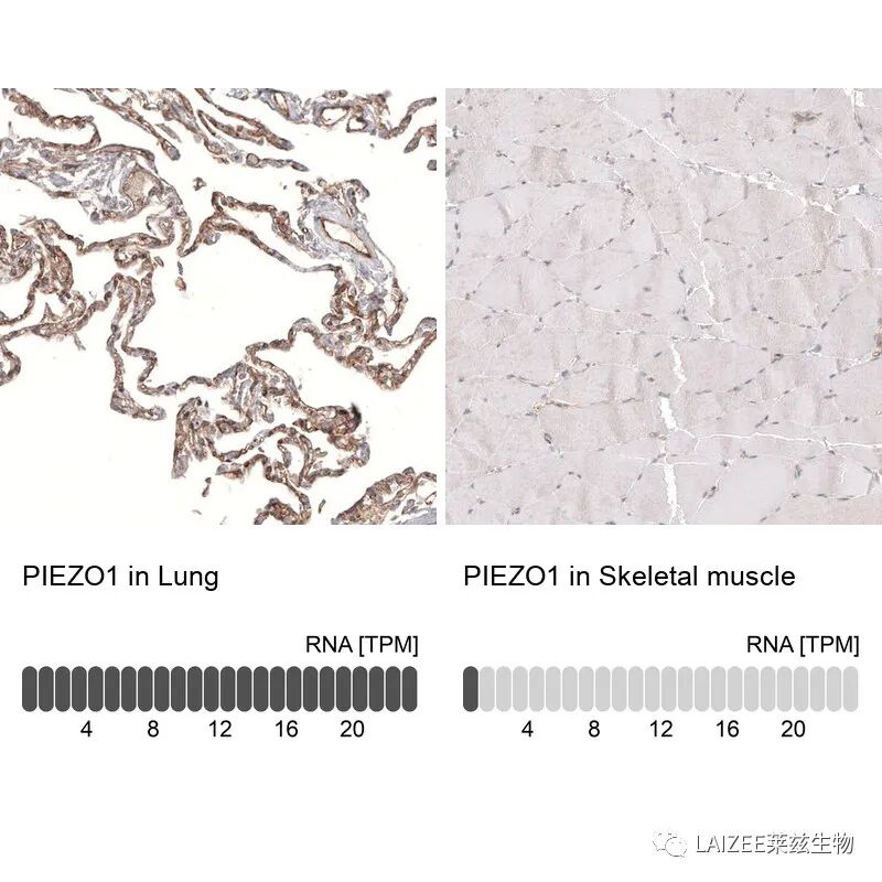 热门标志物抗体 ![]() 使用Anti-B3GAT1 monoclonal antibody (AMAb91575)对U-2 OS细胞进行免疫荧光染色,结果显示在囊泡中有特异性染色(绿色),微管和细胞核分别显示为红色和蓝色(如有)。 ![]() ![]() 使用Anti-PIEZO1 Antibody (AMAb91589)抗体对人肺和骨骼肌组织进行免疫组化分析。针对相同的组织提供了相应的PIEZO1 RNA序列数据。 Anti-ATG5 Antibody (AMAb91582),人子宫内膜的免疫组化显示腺细胞阳性染色 ![]()