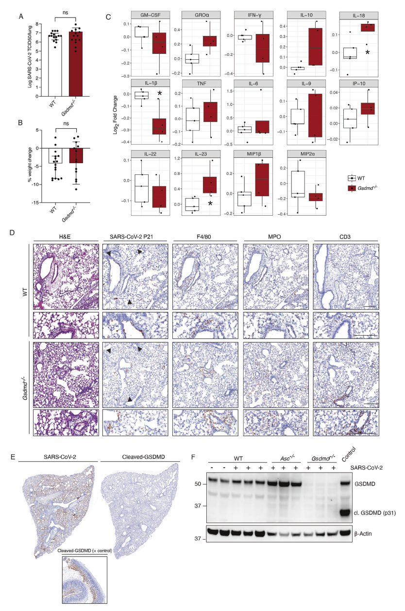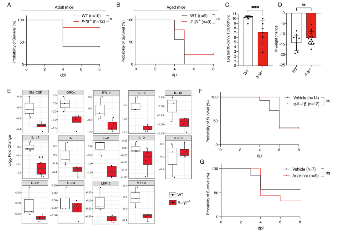 ![]() IL-1β独立于炎症小体和焦亡信号驱动SARS-CoV-2诱导的疾病 重症COVID-19的核心特征是过度炎症和细胞因子释放,但程序性细胞死亡(如焦亡)在其发病机制中的作用尚不明确。 焦亡是由炎症小体启动、gasdermin D(GSDMD)执行的促炎程序性细胞死亡,可释放 IL-1β、IL-18等细胞因子,此前体外研究提示其可能参与COVID-19病理过程,但缺乏体内遗传证据支持。 现有研究对炎症小体、焦亡相关分子及促炎半胱天冬酶在SARS-CoV-2感染中的作用存在争议,亟需通过基因靶向小鼠模型验证其在体内的致病性贡献。 ![]() ![]() 研究目的 ![]()